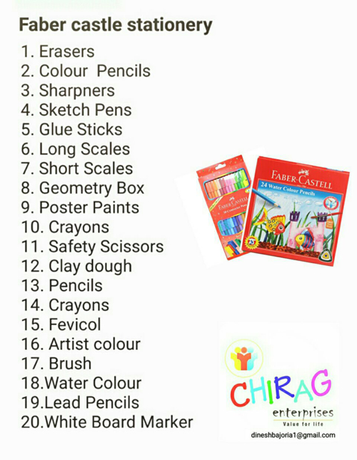 We furnish superior quality of customised stationary in the domestic market. Our wide range of stationaries comprise of Pencils, Erasers, Colour Pencils, Sharpners, Papers, Document files, Planners and so on and so forth. These stationaries can be used in both school as well as office use. They are very durable with effective performance. When it comes to the prize of these stationaries we offer them at much discounted rates as against the regular market. We supply individual stationary items as well as stationary kits as per school's need. Stationary kit cotains all the stationary as approved by the school.